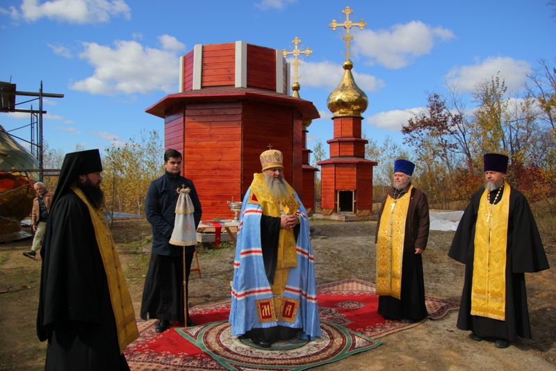 Митрополит Артемий освятил купола строящегося храма в честь новомученицы Екатерины Арской