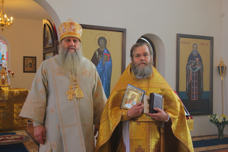 После службы настоятель храма отец Олег Разумов обратился к архипастырю с поздравлениями и словами благодарности за архиерейский визит.