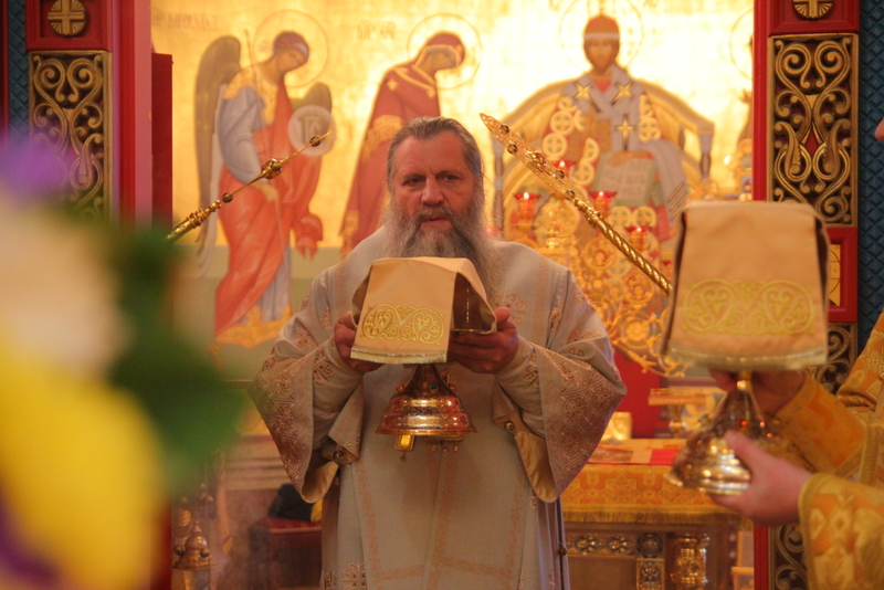 После Божественной литургии настоятель храма игумен Пантелеимон обратился к архипастырю с поздравлениями и словами благодарности за заботу о пастве.