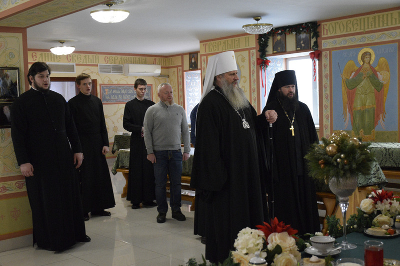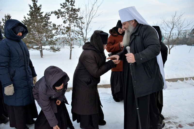 – Дорогие сестры! Всех вас сердечно поздравляю с Рождеством Христовым! В преддверии Крещения я очень рад быть здесь и помолиться вместе с вами. Обитель - это то место, тот ковчег, в котором вы должны обрести неземной покой. Не для того, чтобы уйти от каких-либо мирских невзгод, а именно для приобретения Царствия Небесного в душе. Главным подвигом для монашествующего являются послушание, пост и молитва. Эти три добродетели мы должны каждодневно стяжать. Ничто не должно нас отвращать от Божией любви. Имейте и вы эту ответную любовь к Господу нашему, который ради нашего спасения воплотился от Пресвятой Богородицы. Да не коснется вас уныние, никакая скорбь, лишь чтобы сердца устремились к Небесной обители. Я вас всех поздравляю с праздником, помощи Божией, Храни Господь и Покров Пресвятой Богородицы будет над всеми вами!