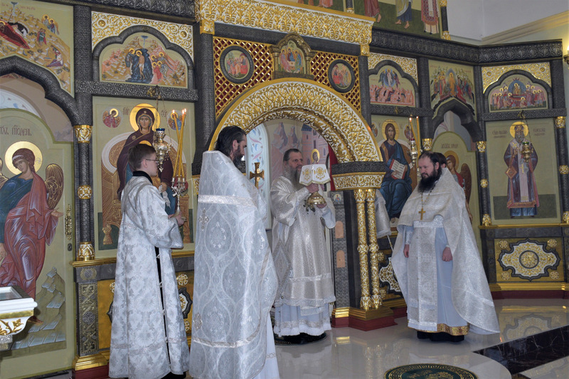 Его Высокопреосвященству сослужили: секретарь епархиального управления иеромонах Николай (Белозеров), клирик собора Рождества Христова иерей Александр Иванов.