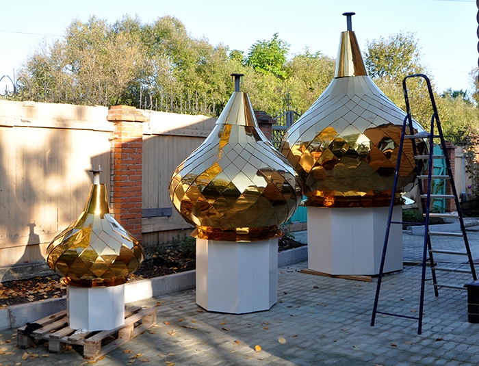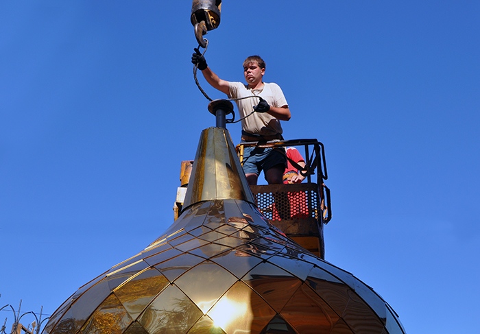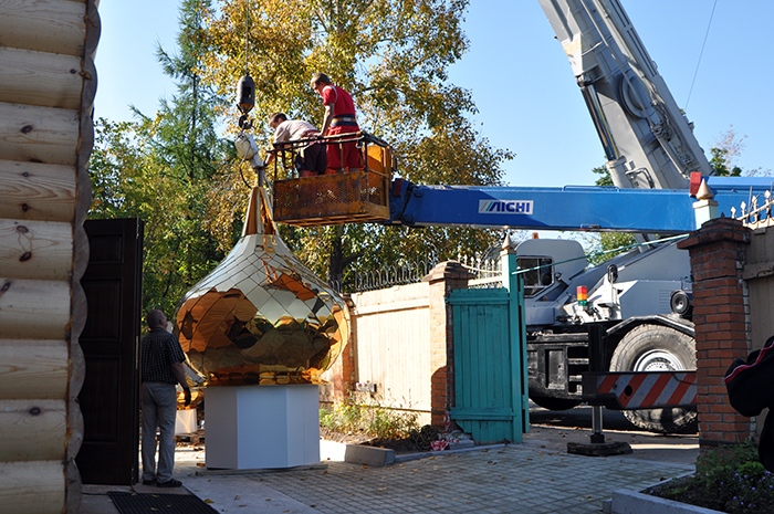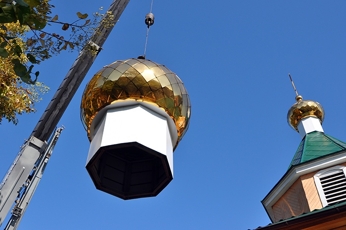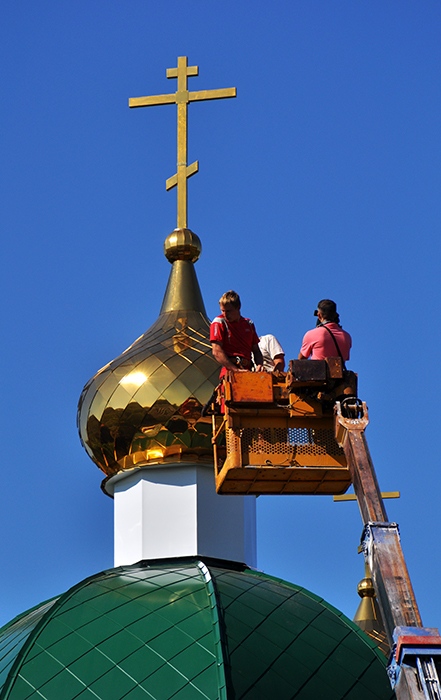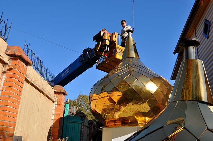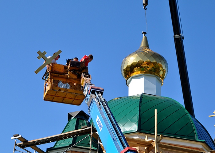 На обновленный храм св.благ.вел.кн. Александра Невского установлены купола. 9 сентября 2013 года.