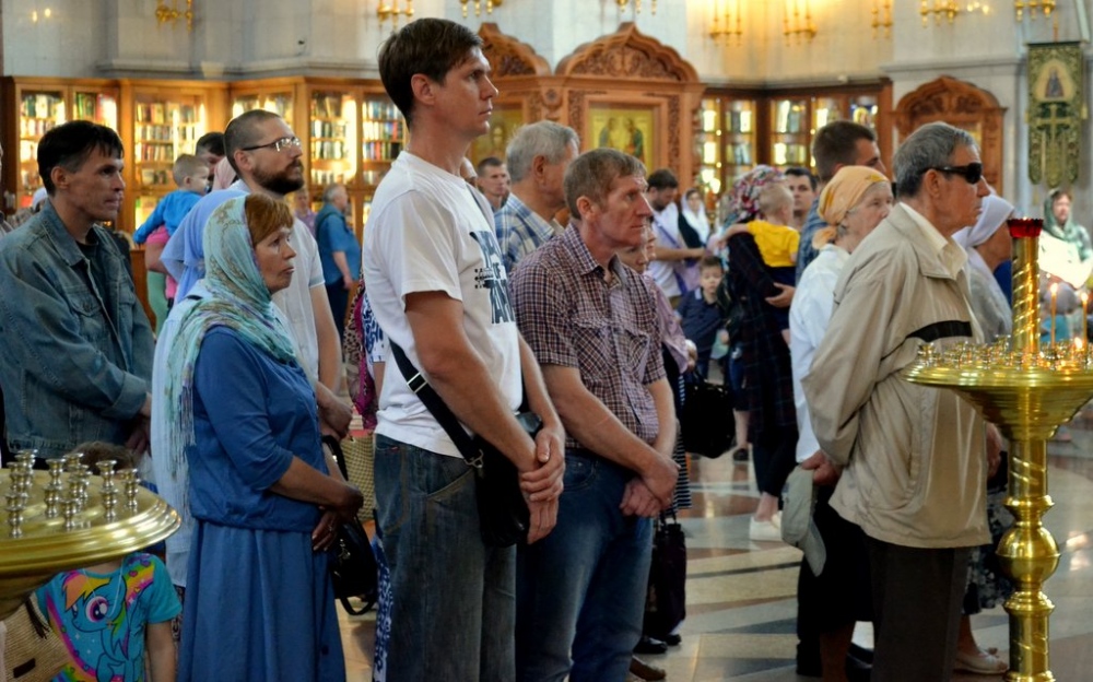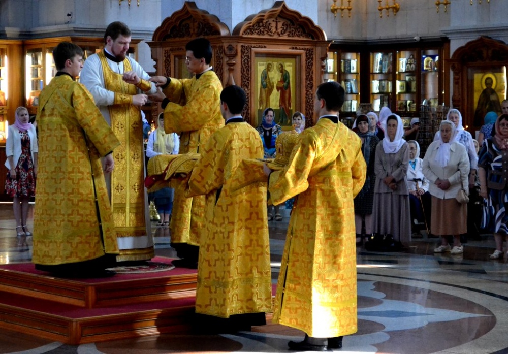 Божественная литургия в Спасо-Преображенском кафедральном соборе Хабаровска в день Всех Святых. 26 июня 2016 года