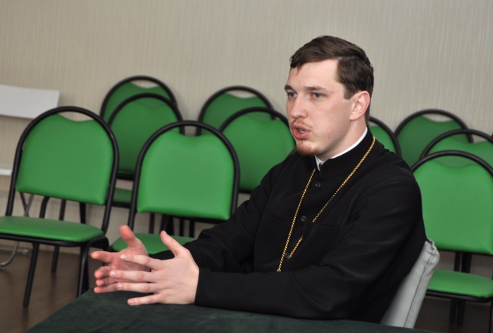 Спортсмены Хабаровской краевой общественной организации тхэквондо «Торнадо» и члены их семей на экскурсии в Спасо-Преображенском кафедральном соборе. 7 октября 2012 г.