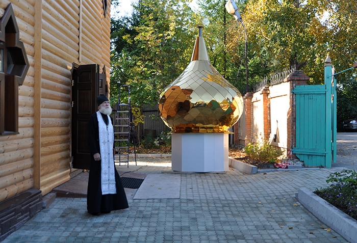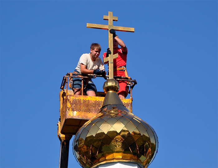 На обновленный храм св.благ.вел.кн. Александра Невского установлены купола. 9 сентября 2013 года.