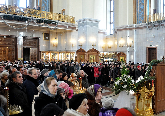 Митрополит Хабаровский и Приамурский Игнатий в Спасо-Преображенском кафедральном соборе совершил чин Великого освящения воды. 19 января 2013 года