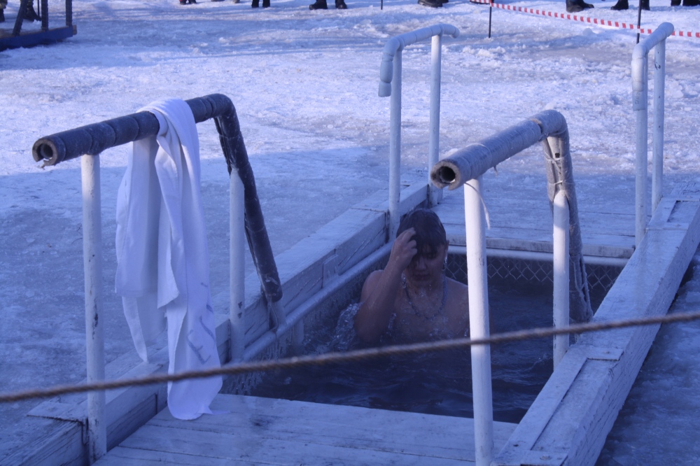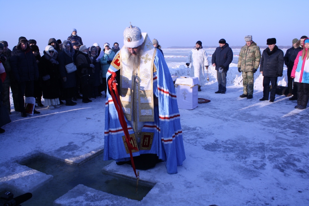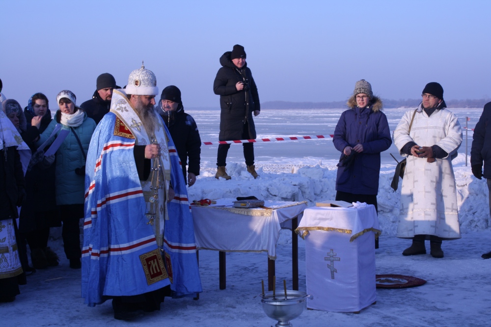 Освящение купели на берегу реки Уссури в районе ул. Минусинской 19 января 2020 г.